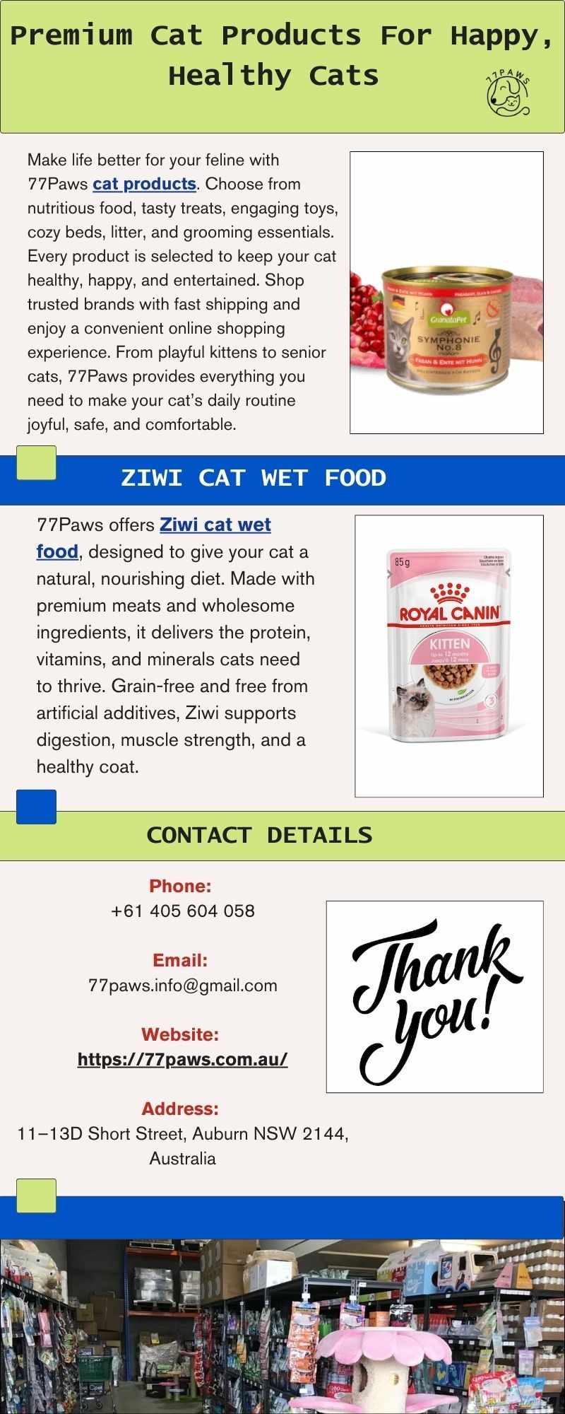 Find everything your pet needs at 77Paws, your trusted Sydney pet store. Explore top pet food brands, treats, supplements, toys and daily essentials. Enjoy convenient online ordering, great prices and reliable delivery across Sydney. Contact us +61 405 604 058